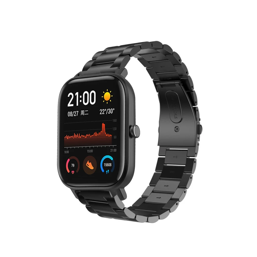 | For Amazfit GTS Band 20mm High-End Three Beads Solid Stainless Steel Metal Replaceable Watch Strap For Amazfit GTS Bracelet |
