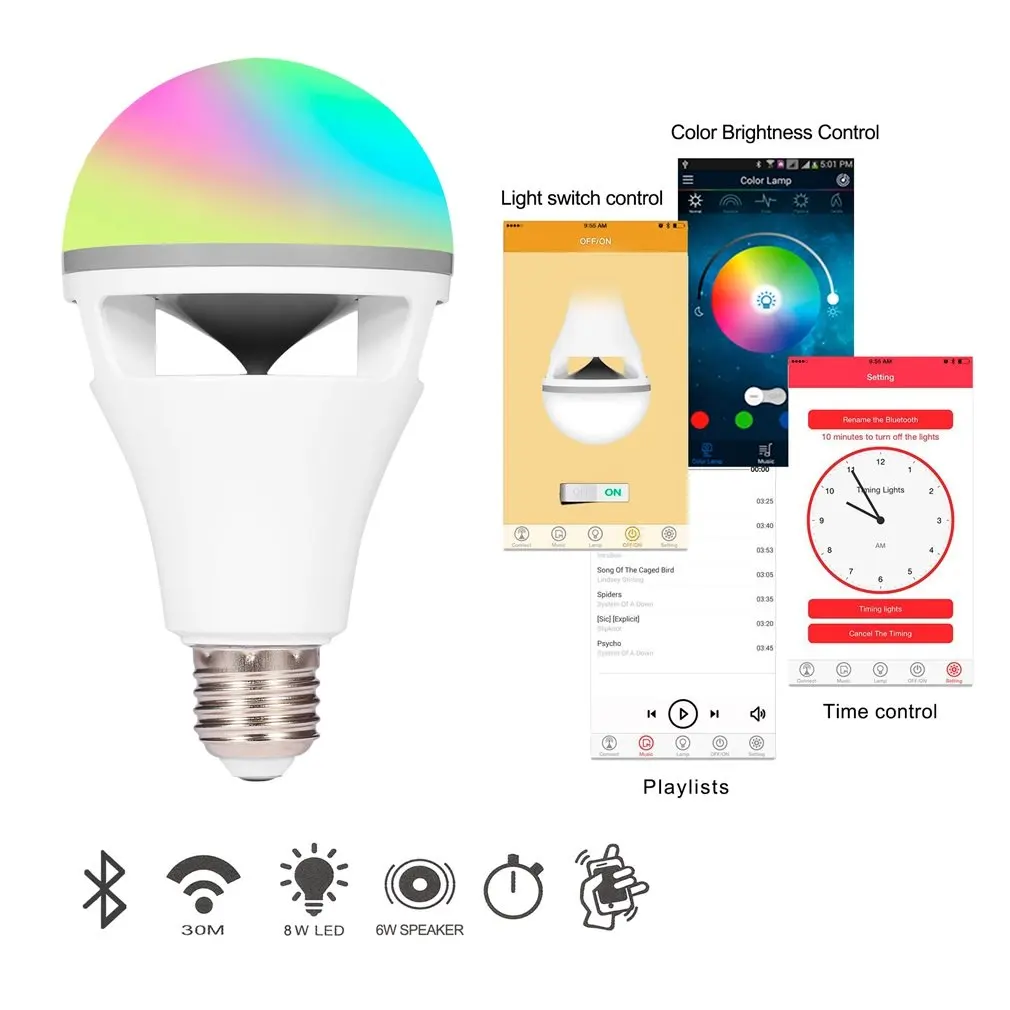 | Smart Enjoyable RGB Color Changing Music Ball LED Light E27 Bulb Bluetooth Speaker Remote Controled Via APP Control |