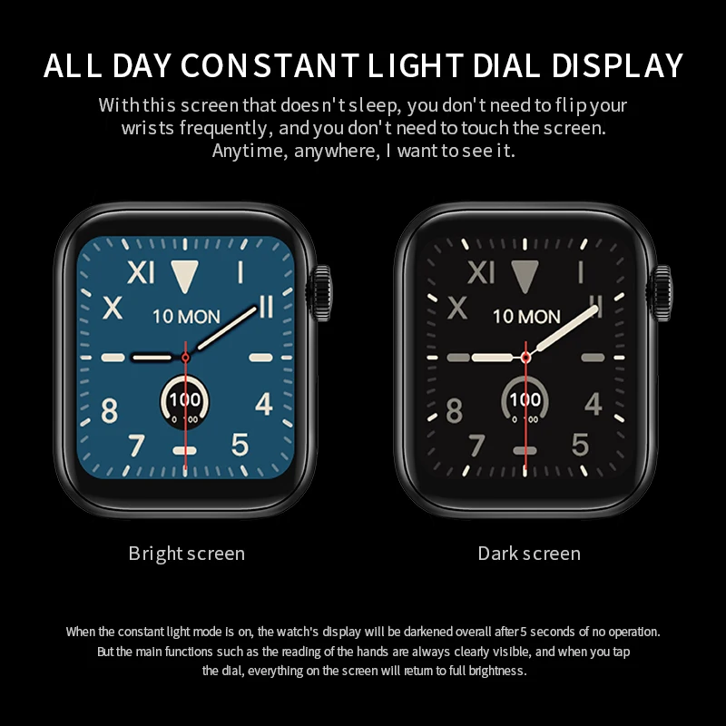 Smart Watch Women W58 24-Hour Constant Bright Screen Watch Full Screen Touch Heart Rate Sports Smartwatch For IOS iPhone
